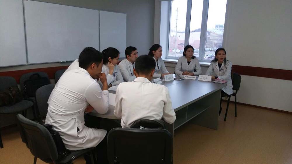 The classes for students of the 5th course of the specialty "General Medicine" on d-PBL cases, developed by the tutors of the KSMU, began on November 8, 2017 in Karaganda State Medical University. Two groups with the Russian language of instruction and two groups studying in the Kazakh language participated in the training. The training went according to plan.